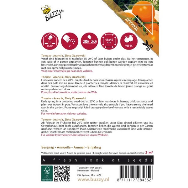 Vanaf eind februari in ‘n zaaibakje bij 20°C of later buiten onder glas. Na het verspenen, in een kasje of in potten uitplanten. Tomaten kunnen ook buiten
